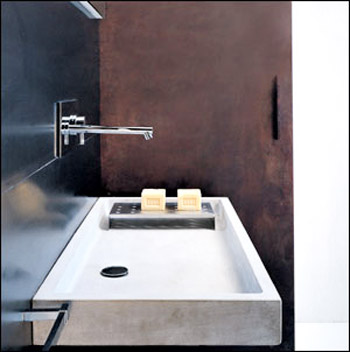 衛(wèi)浴的色調(diào)以黑白灰為主。墻面灰色的亞光瓷磚中間,因?yàn)橘N了一道西德石雕花墻磚,使單調(diào)的墻變得豐富起來,在整體視覺上讓人感覺很精致。