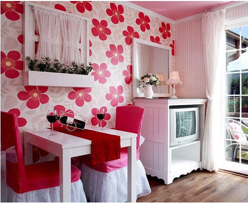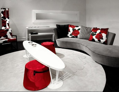 紅色是最搶眼的顏色,與在視覺(jué)上起收縮效果的藍(lán)色相比,紅色對(duì)視覺(jué)起強(qiáng)烈的沖擊作用。一般使用在鏈接標(biāo)記家具和窗簾等大的物品上,一定要注意緩和壓迫感?;蛘卟挥悯r亮的紅色。而改用灰色調(diào)或暗色調(diào)的紅色。說(shuō)起粉紅色,它不像紅色那樣強(qiáng)烈,但是印象鮮明,在表現(xiàn)可愛(ài)、成熟的時(shí)尚時(shí),都可以使用。華麗的紅色、純凈的白色、成熟的粉紅色互相襯托、競(jìng)相艷麗。