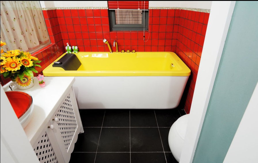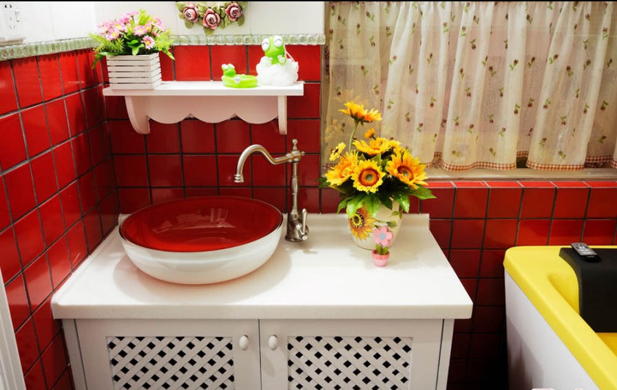 小衛(wèi)生間里色彩豐富,韓式田園并不是只有花朵,色彩的艷麗也同樣可以達(dá)到效果。