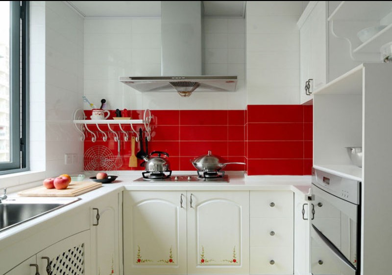 韓式風(fēng)格的小廚房里,色彩鮮艷,格局分明,雖然空間不大,但是色彩的區(qū)分下使空間并不擁擠,讓人心情舒適。