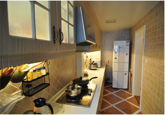廚房射燈設(shè)計的比較人性化,每個使用空間處都安裝了射燈,做到將方便帶到每個操作臺旁。展柜的射燈光線由每格頂處打出,使展柜變得立體而有了重心,并且增強了時尚感。