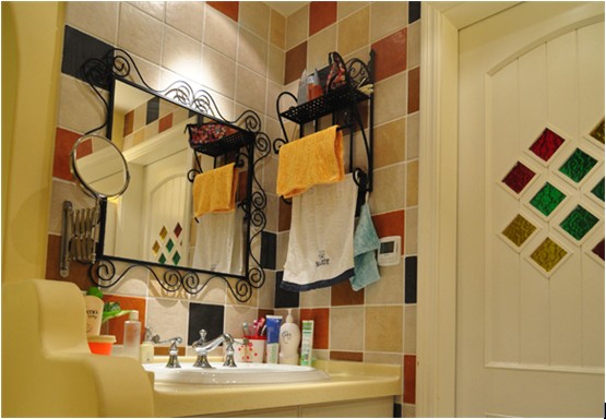 衛(wèi)浴間以溫潤的暖色代替原來希臘風(fēng)格地中海的藍白色調(diào),這樣的環(huán)境增加了居住的舒適度。淡淡的黃有著陽光的味道,暖暖的很溫馨。