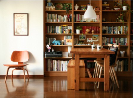 小餐廳與廚房是在一起的,水池與操作臺連著煤氣,加上冰箱的擺放位置正好是這個空間里的整體長度,一點空間都沒浪費出來。廚房用具里的瓶瓶灌灌都有序的擺放在掛勾上。操作臺的下方是定制的廚柜,空間分明,可以根據(jù)要求,擺放不同的物品。餐桌的是精挑細(xì)選的哦,90公分長不到,兩個精致小巧的木質(zhì)餐椅。