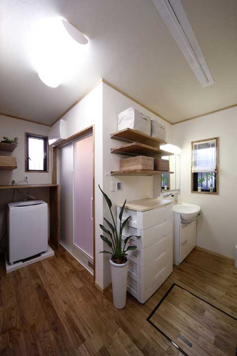 衛(wèi)生間里采用墻紙鋪貼有點像樹木表皮的感覺,配上綠色植物,讓人有種置身于熱帶雨林的錯覺,這種風(fēng)格非常純樸,當(dāng)之森林系家居!
