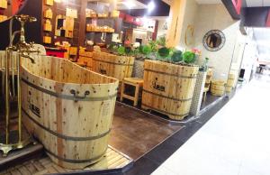 隨后,記者又來到了紅星美凱龍岳各莊店。山度士潔具店的銷售員一再強調(diào)自家是嘉熙木桶專賣,卻同時代理著陶瓷和木桶兩種產(chǎn)品。店內(nèi)一款規(guī)格為120×620×820(厘米)的香柏木浴桶售價高達2753元,同樣是香柏木浴桶,藍景麗家大鐘寺店NOBAL衛(wèi)浴工作室銷售的規(guī)格為120×620×700(厘米)的林森牌木桶,只要1780元就能買到,相差近1000元。