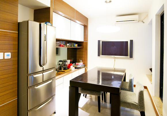餐廚空間共有,不想改變其它空間,所以盡量將廚房空間利用出來,餐廚共有。