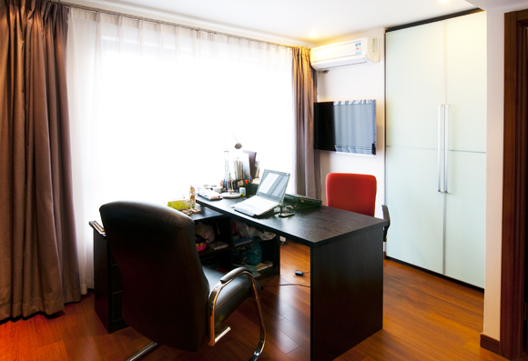 書房里的色彩是黑色系的,穩(wěn)重,低調(diào),正適合書房用途