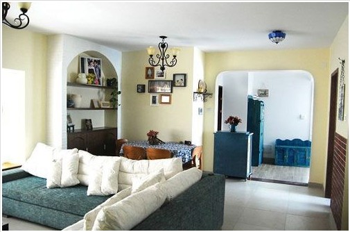 以溫馨的簡(jiǎn)單裝修,來做家庭的一部分的硬裝,以溫馨的藍(lán)色家居做家庭的軟裝,兩者相結(jié)合,打造溫馨完美地中海空間 。藍(lán)白相間的沙發(fā)紅色劈開磚地中海味道更加濃烈!