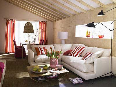 利用裝修手法區(qū)分:各個功能性分區(qū)都有它的主要功能,您可以利用獨(dú)特的裝修手法來區(qū)分它們。這種區(qū)分主要在吊頂上,如在整個大廳中可以做兩個局部的吊頂,在會客區(qū)上方安置一個吊頂,在餐廳上方再安排一個吊頂,這樣就自然形成了兩個區(qū)域。另外,還可以利用墻壁裝飾來區(qū)分空間。如在會客區(qū)中,視聽設(shè)備后的“文化石背景墻”就與餐廳的“固定式餐具柜”形成鮮明對比。
