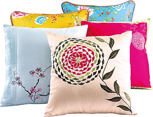 “工筆花鳥(niǎo)”刺繡是這一秀抱枕的主打。
