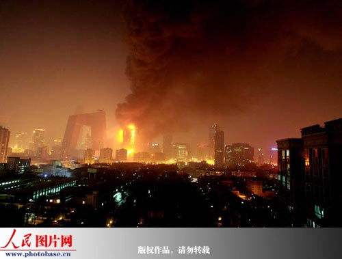 位于朝陽區(qū)CBD的央視新建大樓副樓起火。 版權作品,請勿轉載。來源:人民圖片網(wǎng)