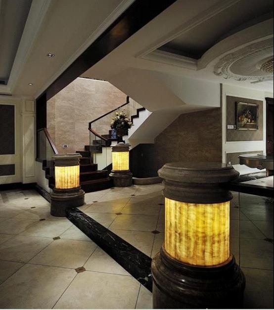 空間采光的局限性,所以過道這塊采光不是很理想,再加上復(fù)雜的吊頂,是的很壓抑,并且很沉悶,燈柱的運(yùn)用很是巧妙,其柱的樣式與整體相呼應(yīng)的同時(shí),錯(cuò)落有致的擺放,給空間多了些錯(cuò)層和靈動感,很好的蓋其壓力沉悶之氣。