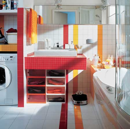 組合與隱藏方式真的是令人樂此不疲,即使是浴室也有可以施展的空間。與淋浴房結(jié)合在一起的組合浴缸,利用有限的空間滿足了兩種不同的洗浴要求,說經(jīng)濟(jì)實(shí)惠一點(diǎn)也不過分。洗面盆臺(tái)面下的空間安置了帶透明門的收納柜子,里面的物品一目了然,卻不礙觀瞻。一道普通的半隔斷分離出一個(gè)獨(dú)立的洗衣間,一道軟百葉簾又將這個(gè)洗衣間巧妙地隱藏起來。整齊有序的空間著實(shí)令人羨慕,其實(shí)只要你愿意,在自己的家里也不是不能實(shí)現(xiàn)。