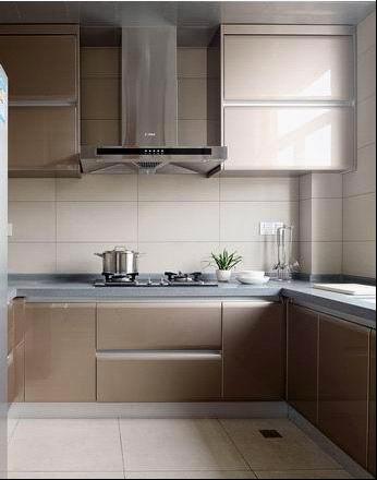 廚房間烤漆板和石英石的結(jié)合,但咖啡色也給整體櫥柜帶來了幾分大氣。