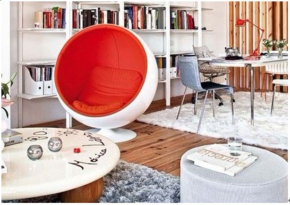 白色的空間內(nèi)必定少不了糖果色的點(diǎn)綴。一把造型新穎的休閑靠椅,一盞橘紅色的臺燈,書架上琳瑯滿目的書架,都是紅與白的完美搭配,素雅中隱藏著熱情,也使整個(gè)空間充滿現(xiàn)代感。