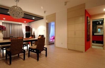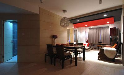 在上班族的生活中,餐廳使用主要在晚餐,燈光是營造氣氛的主角。餐廳宜采用低色溫的白熾燈,奶白燈泡或磨砂燈泡,漫射光,不刺眼,帶有自然光感,比較親切、柔和。日光燈色溫高,光照之下,偏色,人的臉看上去顯得蒼白、發(fā)青,飯菜的色彩也都變樣。照明也可以采用混合光源,即低色溫燈和高色溫燈結合起來用,混合照明的效果相當接近日光,而且光源出不單調,可以選擇。
