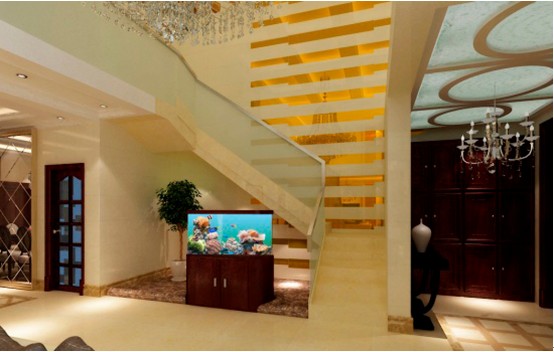 樓梯下面的風水魚水箱的擺放處,如果想家里的風水魚永遠保持活力,不防試試電子魚吧,不會出現(xiàn)死掉的可能哦。
