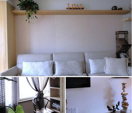 素雅的空間總給你一直溫馨感,簡單而舒適。白色的墻面設計一個原木色的置物架,可擺設盆栽和裝飾品。又軟又大的雙人沙發(fā)正對面電視墻也是潔凈的白色,沒有任何的背景裝飾,電視柜上放置一些創(chuàng)意的小玩意。休閑的陽臺上一把中式復古的靠椅,坐在這個明亮的窗戶前可以隨手拿到雜志閱讀,悠閑地度過嫻靜的時光。
