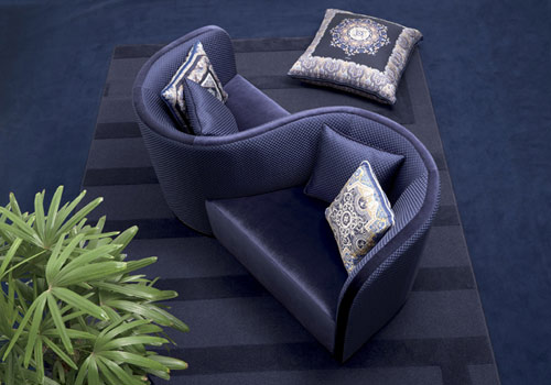 小沙發(fā)Face To Face,藍(lán)色絲絨面料,兩個(gè)相連的座位營造和諧浪漫的氣氛。