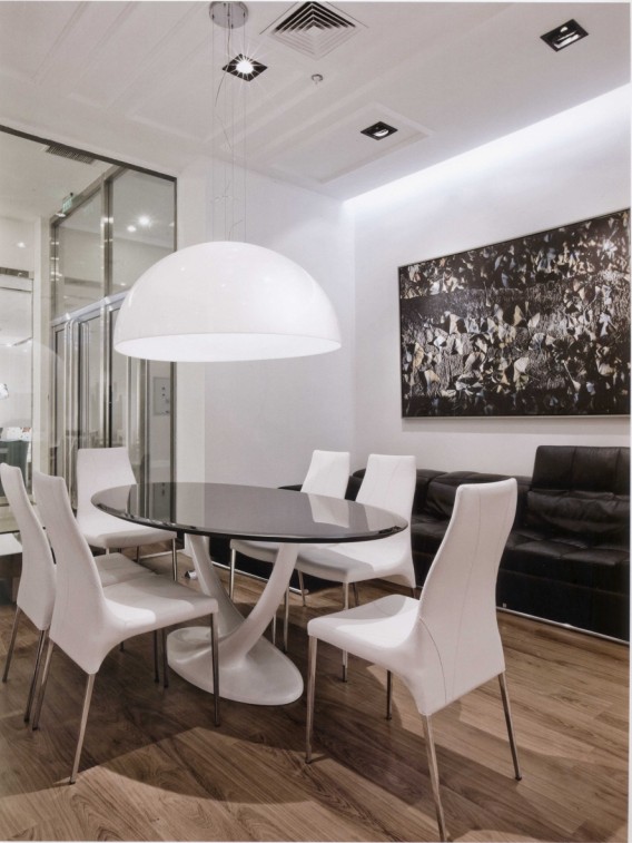 大氣而不俗的風格定位,讓本案設計必須配合新古典主義的風尚和簡約寫意的風格。室內基本比較簡潔,利用黑白兩個分區(qū)把新古典主義和現(xiàn)代風格區(qū)分開來,深色玻璃讓兩個空間分開的同時又相互聯(lián)系。高貴而大氣是本案的核心品質,室內設計必須努力做到這一點,才能與之相一致。當人站在深色的空間時,遠處淺色的空間也同樣吸引著你的視線。淺色空間里帶有金屬光澤的家具足以吸引人們進另一個空間,這就利用了視覺心理,讓人們的視線在這個空間彼此交替。