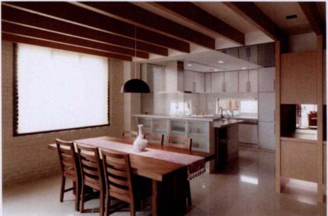 設(shè)計(jì)師運(yùn)用開(kāi)放式空間規(guī)劃,減少木作的使用,以突出挑高、無(wú)壓的空間優(yōu)勢(shì),并使用環(huán)何涂料及原木地板等環(huán)保建材,不只在于健康空間的營(yíng)造,也讓受閱讀的屋主所收藏的書籍有適當(dāng)?shù)氖占{空間。保留斜屋頂,將挑高的區(qū)域規(guī)劃為閣樓,充分采光的天窗及玻璃扶手隔屏連接書房,滿足了收費(fèi)也營(yíng)造了良好的閱讀氛圍。