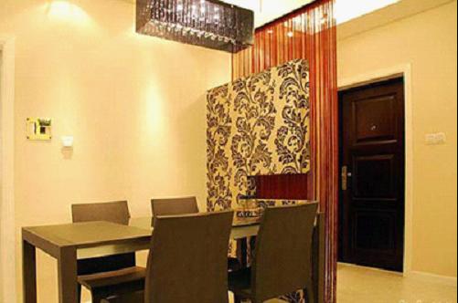 首先這個要建立在你的餐廳和廁所之間的間距足夠大的情況下,在兩者間做一個隔斷或收納柜,這樣沖煞也解決了,還可以增加其儲物功能。