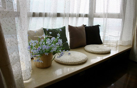 小陽臺上放四個靠背,加上兩個用藤編織的墊子,節(jié)假日坐這看書、喝茶、看多好的地,比起其它地方這里不但通風(fēng)、空氣新鮮還采光特棒,住在高層的話還可以看看外面的美景,何樂而不為呢?想想多美 多愜意。
