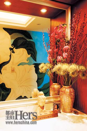 Canna在英文中有“美人蕉”的意思,Canna的家也有些像美人蕉,色彩鮮艷,帶著熱帶植物生機(jī)勃勃的沖擊力。Canna象所有精致生活的上海女人一般,親手布置自己的家,如同澆灌一株植物,天天耕耘、默默看著它成長、繁茂。在客廳看電視的角落掛著一幅畫,尺寸驚人,整整覆蓋了一面墻壁,“金黃色的家具與午后和煦陽光”,令人聯(lián)想起梵高等后印象主義畫家的風(fēng)格,這是Canna請朋友臨摹了一副她喜歡的美國女畫家的作品。