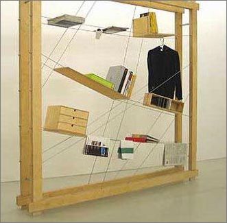 繩索書架(Brace Case),設計者:Ward Huting繩索的穿插方式可以完全自己訂制。很有意思,很個性化,但,應該也很不穩(wěn)當吧。