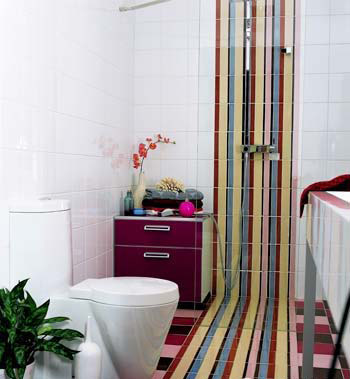 浴室中最理想的色調(diào)是粉色系,例如:粉紅、淡綠、淡藍(lán)及桃紅色等。其次則是奶油色系,或是一些中性色,如:黑色及白色。裝飾物及毛巾等配件則可選擇強(qiáng)烈的對(duì)比色系。