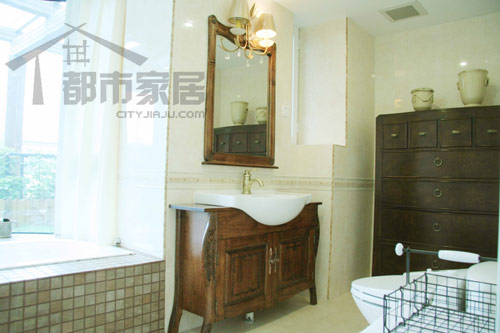 衛(wèi)浴間擔(dān)負(fù)著諸多現(xiàn)代化的實(shí)用功能,原本小編以為這里會(huì)是以簡(jiǎn)約風(fēng)格為主導(dǎo),沒有太大的驚喜,但沒想到這里居然被中式風(fēng)格占了上風(fēng)!鏡子、浴室柜、收納柜統(tǒng)統(tǒng)都是古香古色的中式家具,不僅風(fēng)韻十足,實(shí)用性也毋庸置疑。設(shè)計(jì)師告訴小編這些家具都是從潘家園一帶淘回來的,業(yè)主很對(duì)此很是欣賞呢!