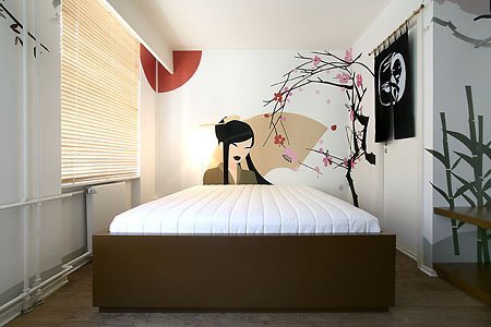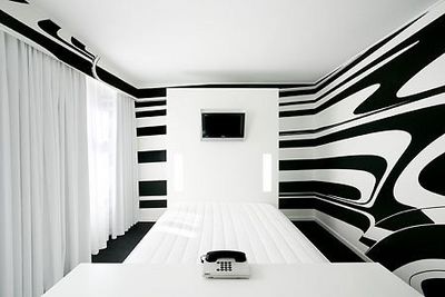 于零五年四月開幕的HotelFox,位于丹麥?zhǔn)锥几绫竟?,它的出現(xiàn)震撼了酒店及涂鴉藝術(shù)界。該酒店邀請(qǐng)了全球十三個(gè)國家,共二十一位著名涂鴉藝術(shù)家、插畫設(shè)計(jì)師,把原本三星級(jí)的舊酒店改頭換面,六十一個(gè)房間配以六十一種不同的裝飾設(shè)計(jì),不再是獨(dú)沽一味,充滿年輕活潑感覺。