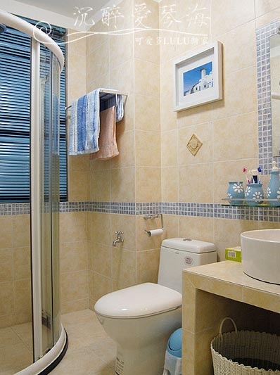 馬桶上方墻面上的裝飾畫—畫中的希臘是我的夢想的地方