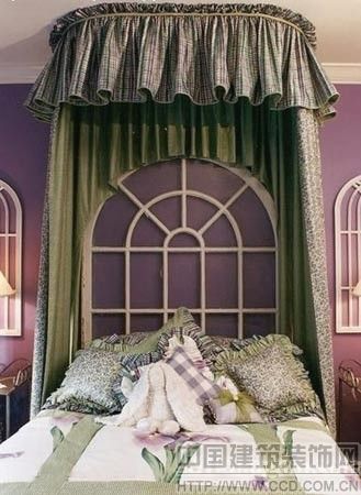 一般講,床頭那面墻沒有窗子的。人為地裝飾出假窗,在安全、 不受風(fēng)又享受通暢感,比如,造一個中式的圓形窗或月亮門,是別有風(fēng)味的。