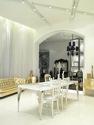 Mode代理了許多高檔家居品牌,充分運(yùn)用了金銀的元素,使得整個(gè)空間頓時(shí)奢華感加分。其中意大利專門生產(chǎn)銀器餐具的Argenteria Sacchi尤為亮眼,款式高貴大方,純銀部份精細(xì)的雕刻令人對(duì)工匠的技術(shù)贊嘆不已。