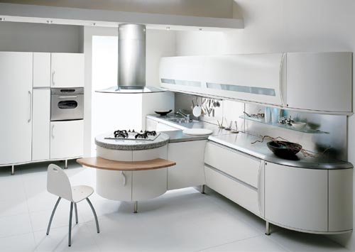 柔和的白色讓整體空間靜謐而清爽,弧形的柜體、門板和墻面融為一體,不僅美感十足更避免了棱角可能對人造成的傷害。舒適的廚房環(huán)境能夠帶給忙碌一天后的工作族最大程度的放松,做一席營養(yǎng)美味的晚餐也不再成為家庭的負擔。