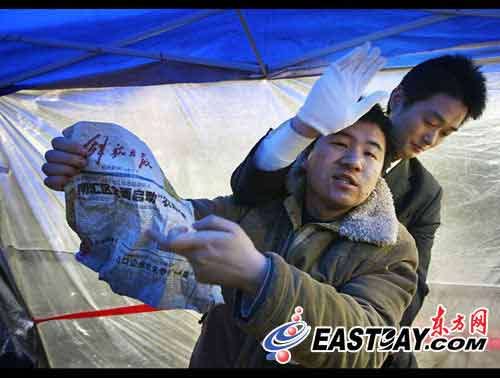 一位手持《解放日報》的市民率先沖進了主辦方搭好的派發(fā)臺