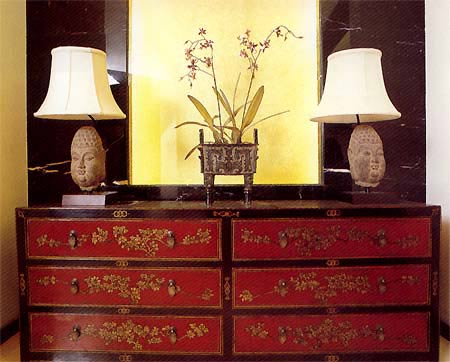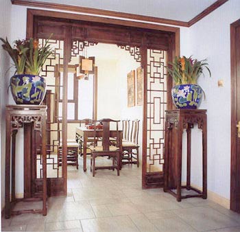 中式家具的構(gòu)成主要體現(xiàn)在線條簡(jiǎn)練流暢,內(nèi)部設(shè)計(jì)精巧的傳統(tǒng)家具(多為明清家具為主)或現(xiàn)代家具與古典家具相結(jié)合,多以深色為主,書卷味較濃。條案、靠背椅、羅漢床,兩椅一幾……都經(jīng)常被選用。傳統(tǒng)的書房里自然少不了書柜、書案以及文房四寶。臥室中雕花的大床,低垂的圍幔,無不透出中式的沉穩(wěn)。中式的環(huán)境中也常常用到沙發(fā),但顏色與樣式仍然體現(xiàn)著中式的古樸。