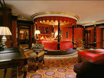 總統(tǒng)套房面積共有435平方米,異域風味濃厚的內(nèi)部設計采用了傳統(tǒng)的胡桃木、皮草、天然纖維制品和意大利大理石等材料,與現(xiàn)代原創(chuàng)藝術作品及等離子電視等時尚元素完美結合,并且配有家庭影院設備、高級音響,傳真機、筆記本電腦和兩套帶有小電視的極可意水流按摩浴缸。入住太陽總統(tǒng)套房即可享受豪華閣待遇,例如在豪華閣酒廊辦理快捷入住和退房手續(xù)、每日免費早餐、免費上網(wǎng)、使用會客廳、享用專屬健身俱樂部和室內(nèi)游泳池等等。