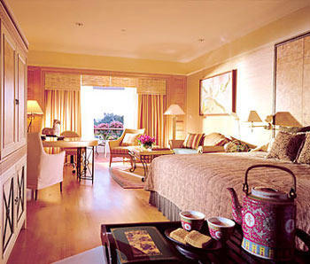 346平米的寬敞套房配有私人專屬入口和電梯,令客人體驗無與倫比的尊貴享受。香格里拉套房休閑區(qū)域選用來自美國的胡桃木地板和純手工縫制的地毯,品位高雅。該區(qū)域由休息區(qū)、書畫區(qū)和用餐區(qū)組成,各處都有通道通向?qū)挸杜_,可以觀賞迷人風景,俯瞰精致花園、露天泳池,以及Tower Wing和Garden Wing的獨特景致。室內(nèi)以精美的法式編織藝術品和來自泰國的奢華絲制靠墊裝飾。套房包括了豪華客廳和書房,寬敞的主臥內(nèi)有專門定做的超大帝王床,餐廳也配備了私人小廚房。