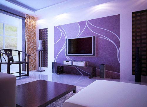 以亮麗的色彩和各種飾線來充實點綴,客廳內(nèi)家具擺放要簡潔卻不失單調(diào),電視墻墻體的主色調(diào)可用橙色、天藍色、紫色等“跳”一些的亮麗色彩,用色可大膽、巧妙,也可用兩種對比強烈的色彩搭配。對于追求個性的年輕人來說,將電視墻面涂成自己認為夠酷夠爽的色彩是不錯的選擇。墻上采用幾何造型的飾線和精美材料組合運用,體現(xiàn)現(xiàn)代化的裝飾風(fēng)格。