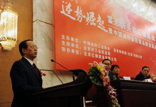 2月22日,里,“逆勢(shì)崛起·富思特并購紅獅新聞發(fā)布會(huì)暨中國涂料業(yè)民族品牌發(fā)展戰(zhàn)略研討會(huì)”在北京人民大會(huì)堂新聞發(fā)布廳舉行,逆勢(shì)崛起的民營(yíng)企業(yè)富思特制漆(北京)有限公司成功和重新煥發(fā)生機(jī)的北京老名牌企業(yè)北京紅獅漆業(yè)有限公司這起被稱為“蛇吞象”的中國涂料領(lǐng)域民族品牌間的最大購并案成為人們關(guān)注的焦點(diǎn)。圖為北京市**茍仲文副市長(zhǎng)蒞臨當(dāng)天的新聞發(fā)布會(huì)現(xiàn)場(chǎng)并講話。(攝影 馬寧 李曉梅)