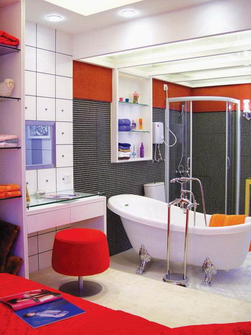 3)浴缸前墻采用磚砌貼瓷磚時,地磚最好先貼至墻下方,然后再貼壁磚,以避免產(chǎn)生破口。