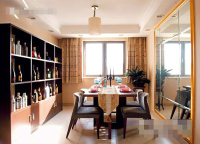 餐桌旁邊的酒柜,杜淳本來是設(shè)計成書柜的,“之前是想把餐廳和書房合為一體,因為餐廳利用率很低,我又沒有老婆又沒時間做飯,電腦打算放在窗戶和鏡子的拐角處,因為父母反對,覺得家還是要有家的整體感覺,結(jié)果做好的電腦桌只好又拆了?!?/FONT>