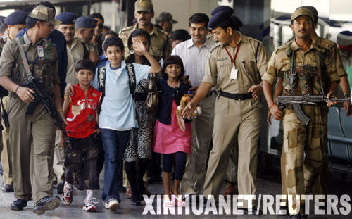 2月26日,電影《貧民窟的百萬富翁》中的幾名小演員在保安的護(hù)送下走出印度孟買國際機(jī)場。在22日晚舉行的第81屆奧斯卡獎頒獎典禮上,以印度為背景的電影《貧民窟的百萬富翁》一舉囊括了包括最佳電影、最佳導(dǎo)演在內(nèi)的8個獎項(xiàng),讓印度全國為之興奮。 新華社/路透