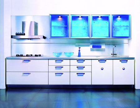 在造型上屬敞開式廚房,一字型櫥柜精致、流暢、溫馨,在色彩上更具時尚的韻味,在設計上體現人性化設計理念,而在功能配置上融入了更多的電器化、智能化科技含量。