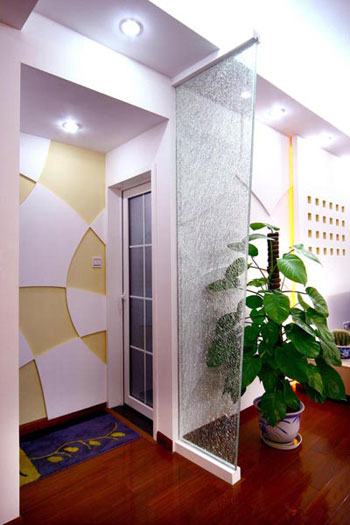在家居風水中,中國的傳統(tǒng)大宅院入門之處均設有大型玄關,而現(xiàn)代都市的住宅普遍面積狹窄,若再設置傳統(tǒng)的大型玄關,則明顯會感覺空間局促,難以騰挪。所以折衷的辦法是用玻璃屏風來作間隔,這樣既可防止外氣從大門直沖入客廳,同時也可令狹窄的玄關不顯得太逼仄。