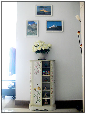 進門,長長的通道。通常大家都沒有注意到廚房,直接被玄關(guān)吸引目光。從下往上看,歐式田園手繪花小柜子,做舊色,懶惰的我覺得好,買回來已經(jīng)仿古了,反正以后舊了也看不出來。淘寶選購,490大元。