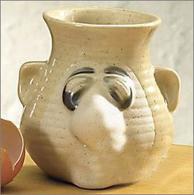 它由陶瓷制成,不過外形上看上去很特別,被做成了一個(gè)大鼻子先生的樣子。這也正是其創(chuàng)意的獨(dú)到之處,你只要將蛋殼敲碎,將雞蛋放進(jìn)這個(gè)容器里面,然后慢慢傾斜,它就能夠讓蛋清流出,留住蛋黃。不過,當(dāng)?shù)扒鍙乃拇蟊亲永锩媪鞒鰜頃r(shí),就像是一股股的鼻涕一樣……
