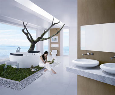 第一部分包括淋浴空間和浴盆、坐廁等空間,是以柔和的光線為主。光亮度要求不高,只要光線均勻即可。光源本身還要有防水功能、散熱功能和不易積水的結構。一般光源設計在天花和墻壁上。一般在5平方米的空間里,要用相當于60W當量的光源進行照明。相對而言,對光線的顯色指數要求不高,白熾燈、熒光燈、氣體燈都可以。其實墻面光比較柔和自然,可以減少頂光源帶來的陰影效應。燈具的位置要在便器的前面上部,不管使用者是站著或坐著都不被遮暗才好。同時光源最好離凈身處近些,只要水源碰不到就可以。